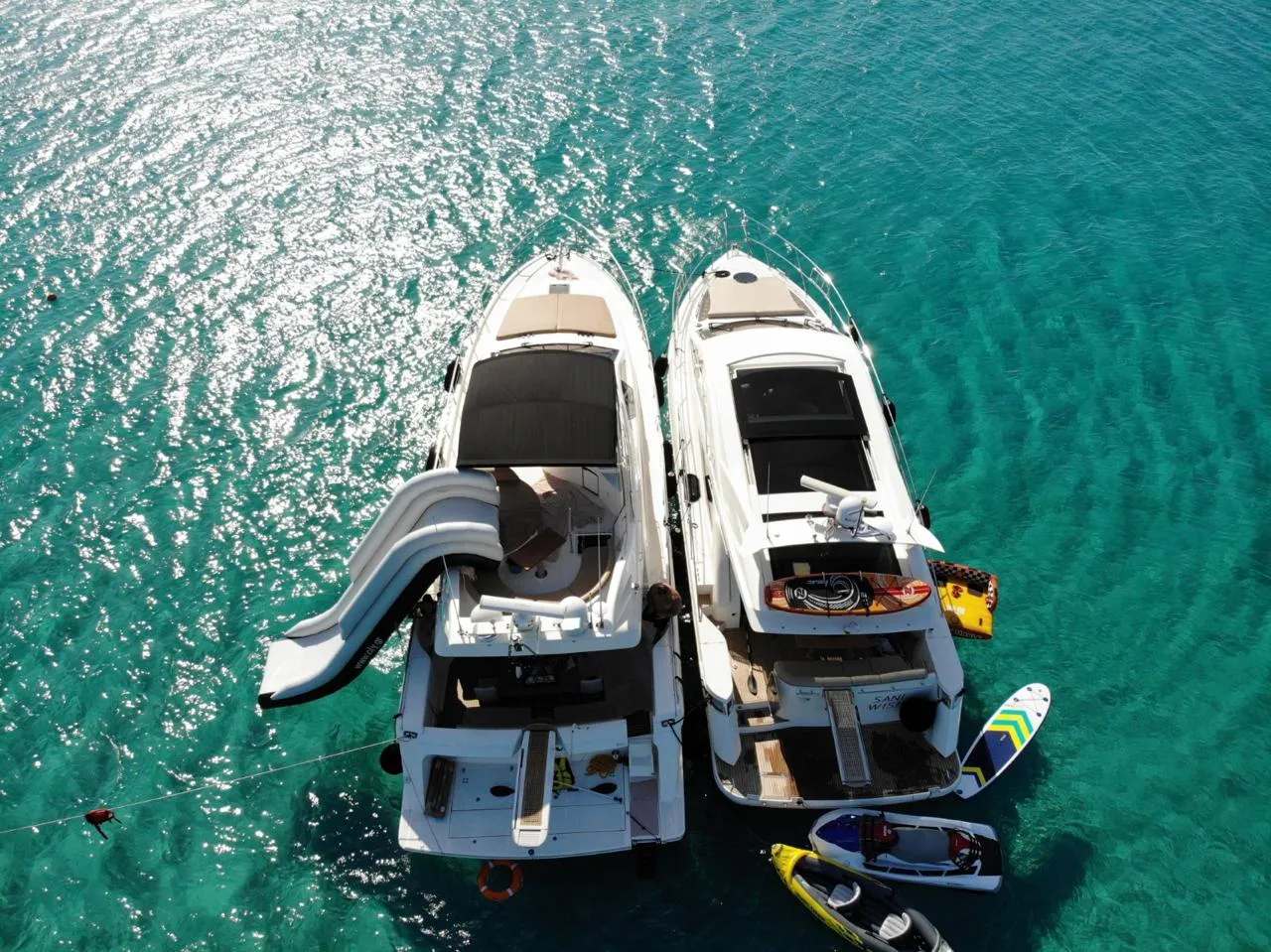 • Jucării nautice unice precum tobogan, jet ski, seabob și alte water toys,